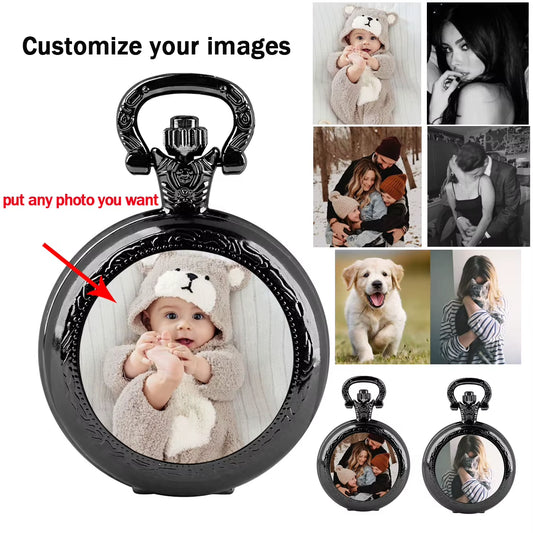 Personality Customization Photo Glass Dome Vintage Quartz Pocket Watch Men Women Pendant Necklace Chain Clock Watch Jewelry Gift