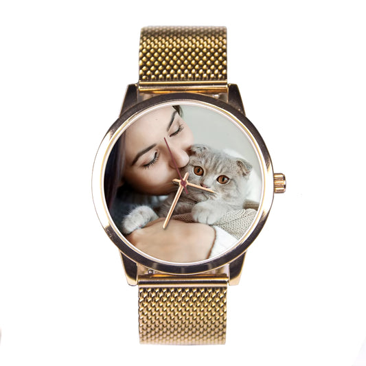Custom Made Universal Watches for Men Pattern Silver Watch Men Wrist Original Photo Fashion Quartz Wristwatches Gift Pet Son Cat